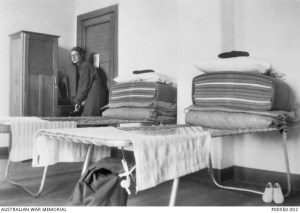 Audrey described how everything had to be folded up each morning, ready for inspection. When asked how long it took to learn how to do that, Audrey’s instant response was “Very quickly, because we had inspections!,” (she laughed).